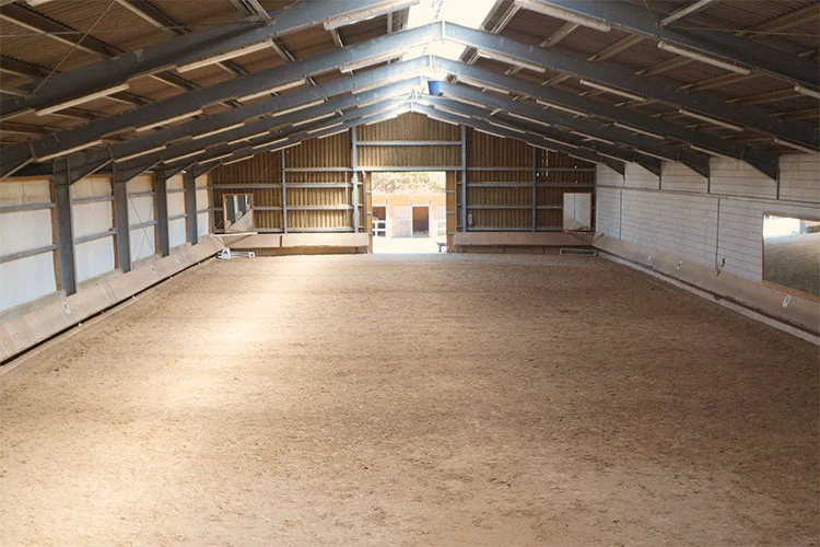 Unsere 20 x 50m große Reithalle kann ebenfalls, entsprechend dem Belegungsplan, genutzt werden. Dank großer Tore, sowie einer Beregnungsanlage, ist die Nutzung auch in den Sommermonaten angenehm.