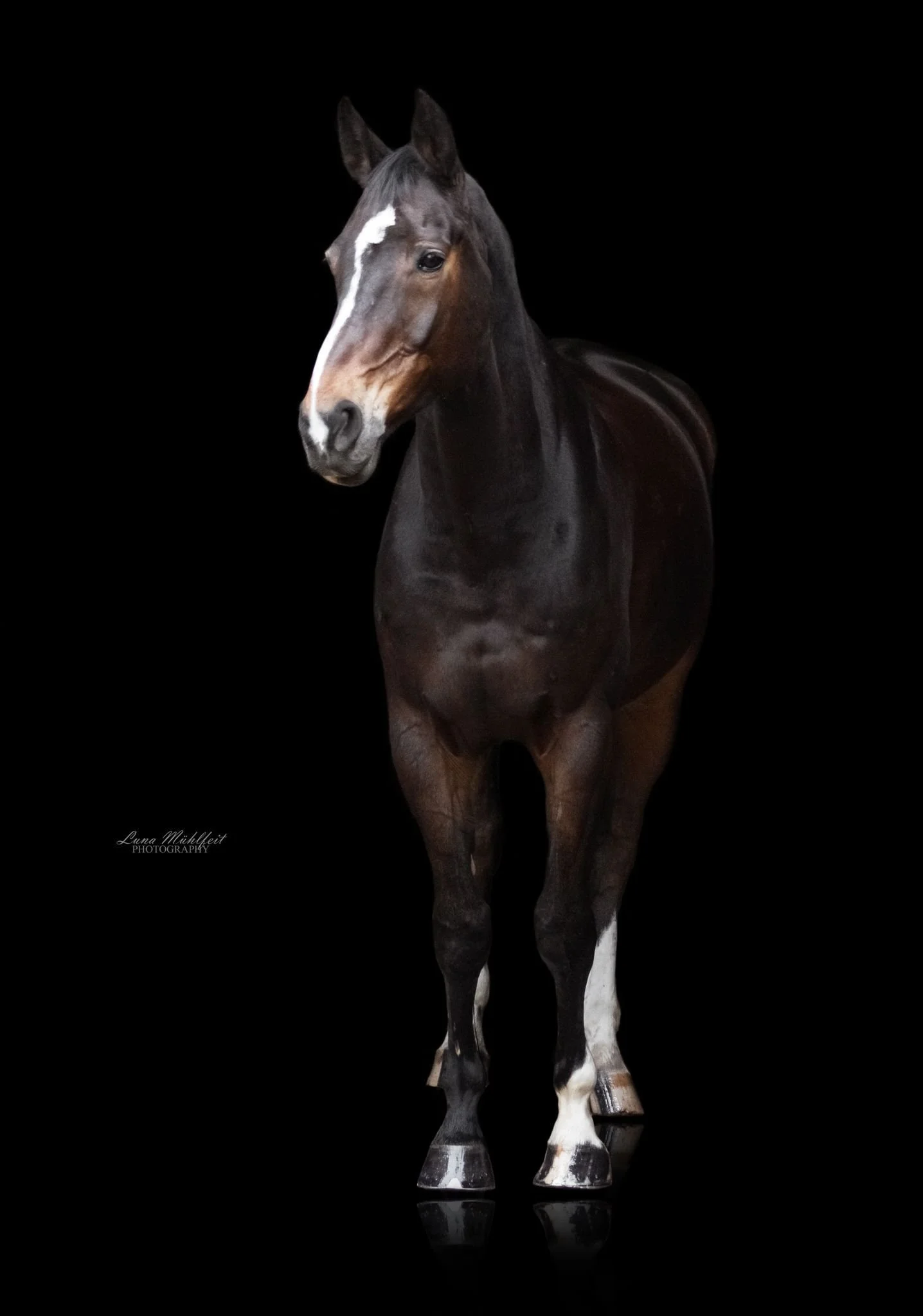 Der Professor. Als turniererfahrenes Springpferd ist er unerschrocken und absolut zuverlässig. Er verzeiht (fast) jeden Fehler und ist für jeden Spaß zu haben. Ob bei einer Springquadrille oder verkleidet als St. Martins Pferd – auf ihn ist immer Verlass. Er ist junggeblieben und trägt auch die ängstlichsten Reiter auf seinem Rücken.